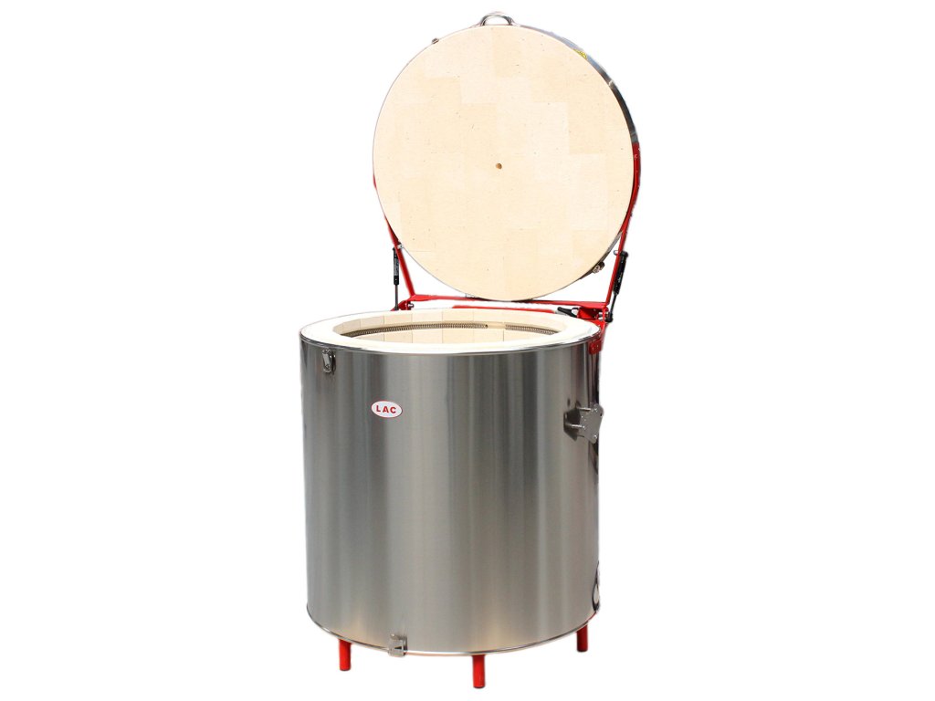 This top loading kiln has been a proven choice for years, for both „hobby“ ceramics and professional ceramicists who require top loading. Its circular shape and design ensure an even temperature distribution in the working chamber, improving the quality of firing and extending the life of the kiln. The use of top-quality insulating materials reduces electricity consumption. The lid with gas struts and good workshop quality contribute to safe and reliable operation. The kiln shell is made from brushed stainless steel sheet and the temperature controller can be selected from the available options.
